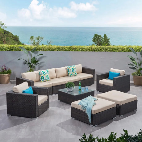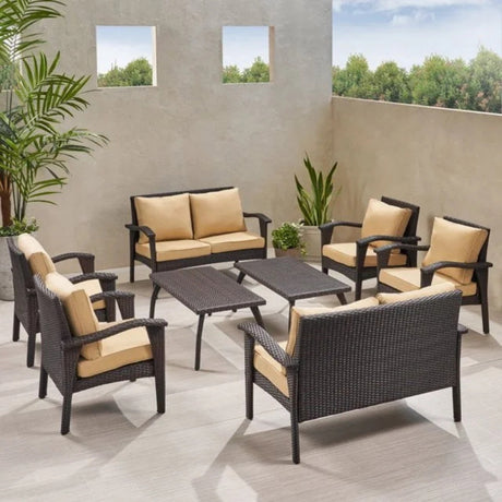 Dark Brown 8 Seater Outdoor Wicker Conversation...