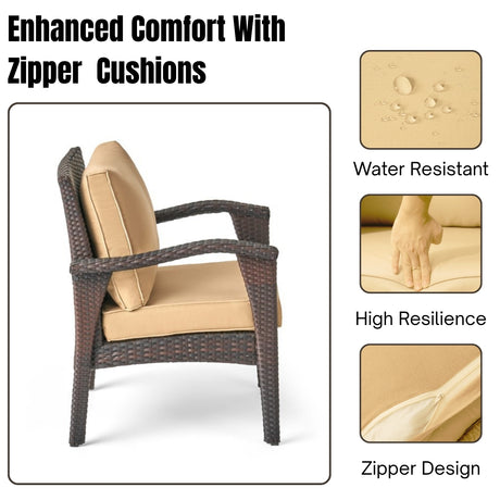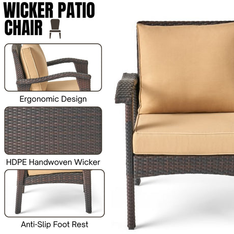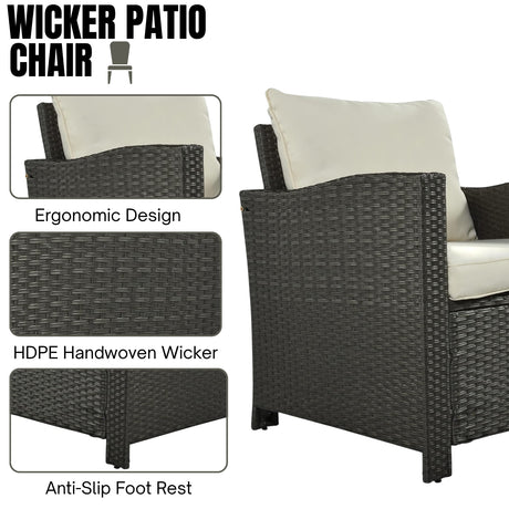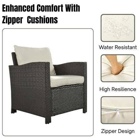 5-Piece Wicker Patio Conversation Set (Beige/Wh...