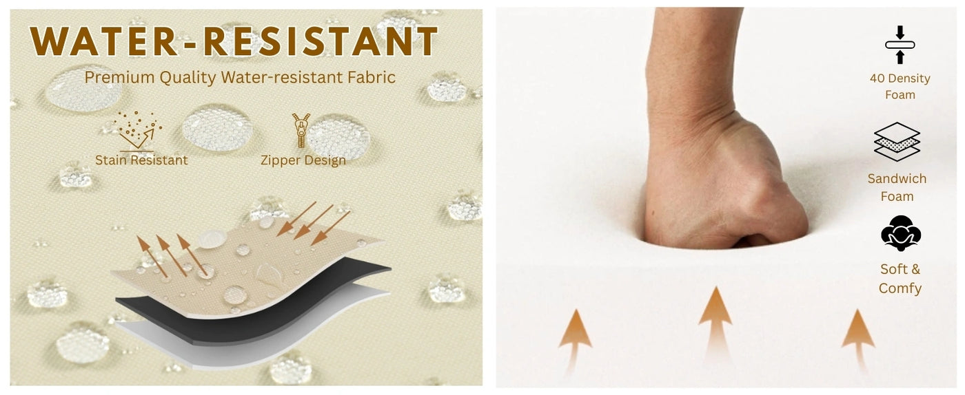- Comfortable Cushions : Thick, soft cushions with washable, water-resistant covers for all-day relaxation.