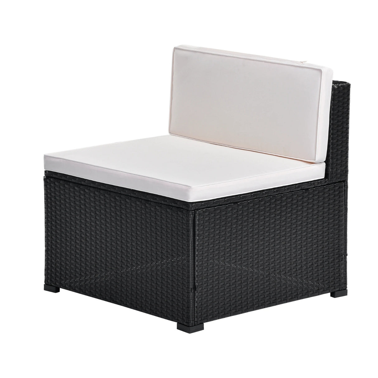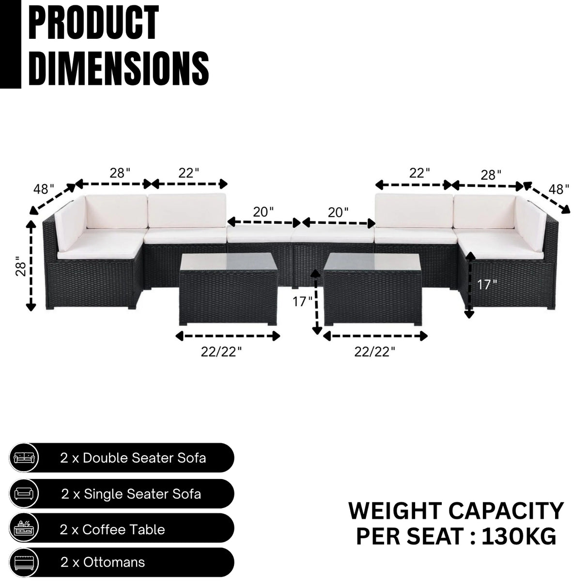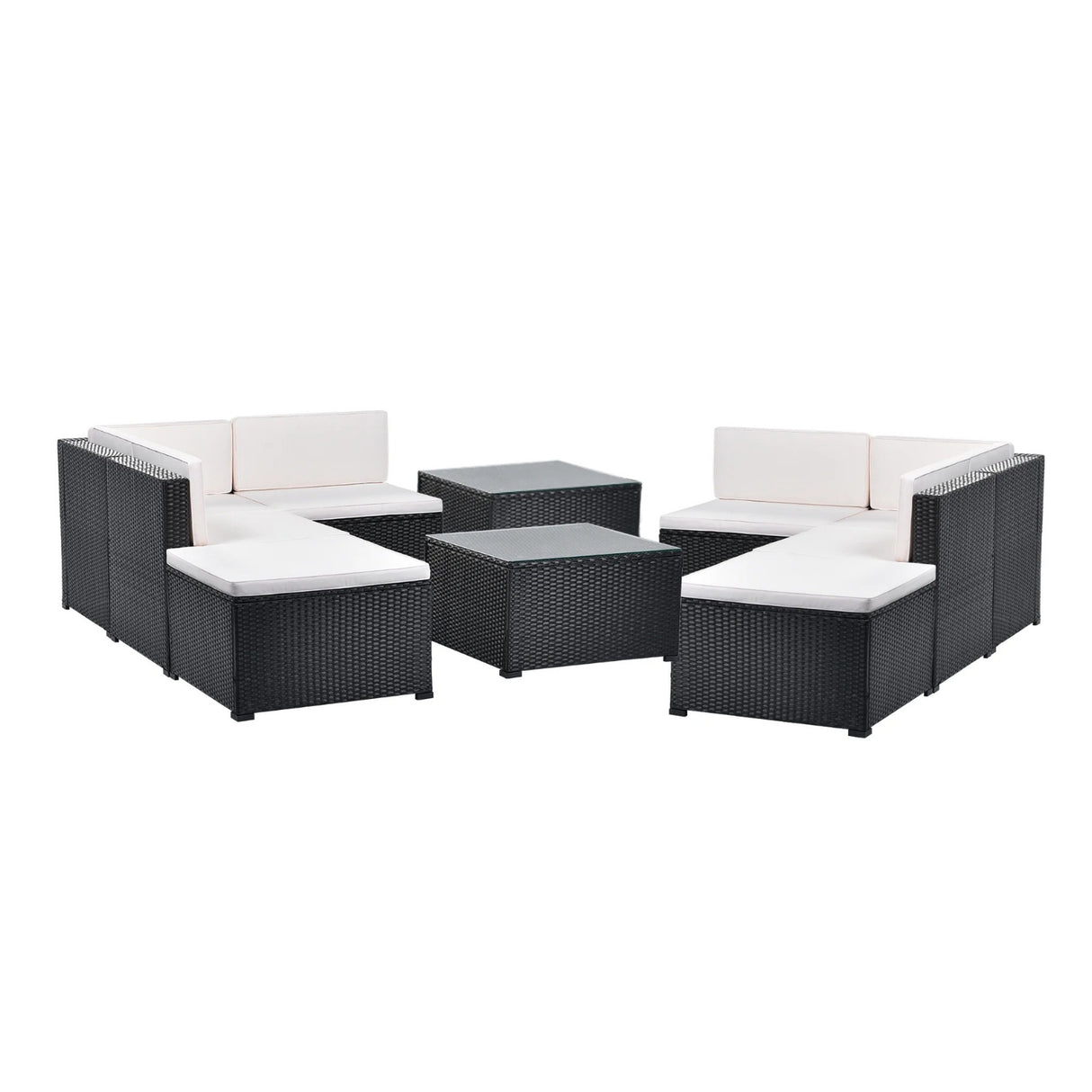 Elevate your outdoor living experience with this beautifully crafted Manual Weaving Wicker Sectional Sofa Set, designed to blend comfort, durability, and timeless style. Whether it's your porch, lawn, garden, or backyard, this premium HDPE rattan furniture set adds a luxurious yet practical touch to your outdoor setting. Handwoven using high-quality, weather-resistant HDPE wicker, the set ensures long-lasting durability through all seasons. The powder-coated metal frame provides a strong foundation that resists rust and corrosion, making it ideal for extended outdoor use. Designed with user comfort in mind, this set includes thick, soft cushions with washable covers, ensuring a plush seating experience that’s easy to maintain. The modular design allows you to arrange the pieces to best suit your space and style, offering maximum flexibility for gatherings, lounging, or quiet evening relaxation. The addition of a matching ottoman enhances comfort, providing a spot to stretch out your legs or use as extra seating. The glass-top coffee table serves as the perfect centerpiece great for placing snacks, drinks, or decorative items while entertaining guests.