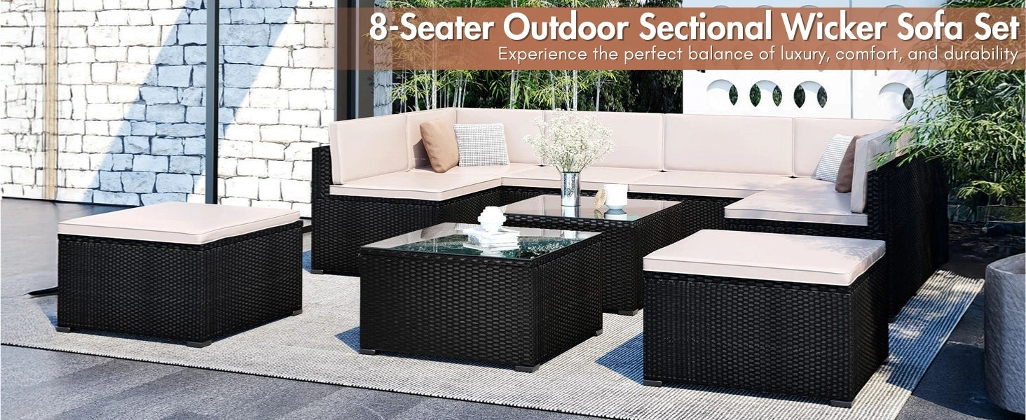 8 Pieces Sectional Wicker Furniture Set is backordered and will ship as soon as it is back in stock.