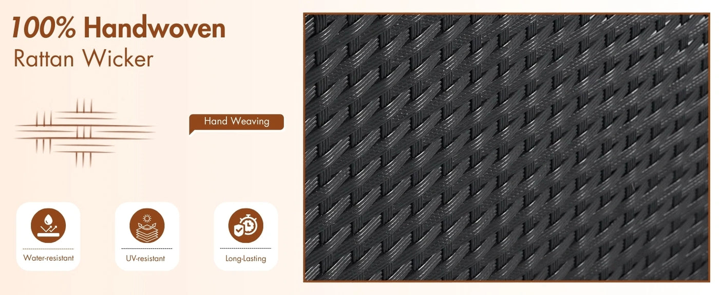 - Premium HDPE Rattan : Handwoven, UV-resistant, and all-weather wicker ensures long-lasting durability.