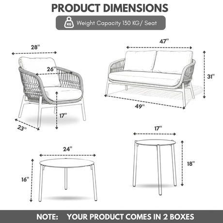 Outdoor 4 Seater Rope Conversation Sofa Set
