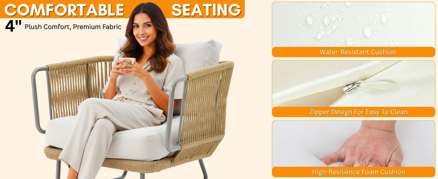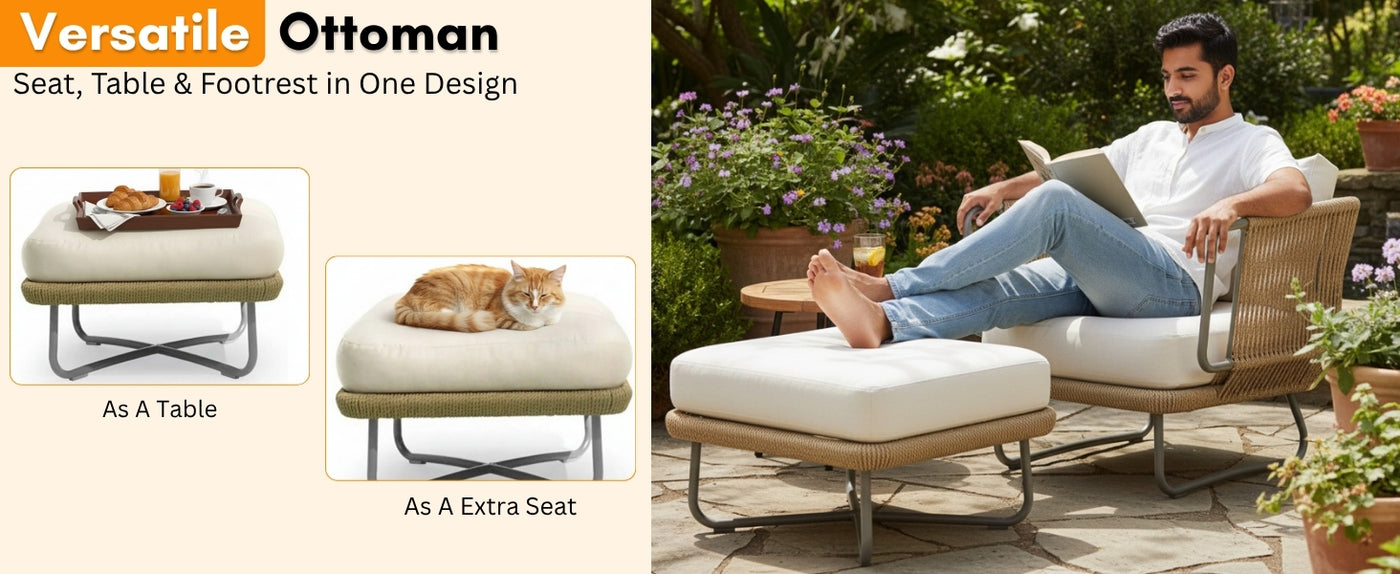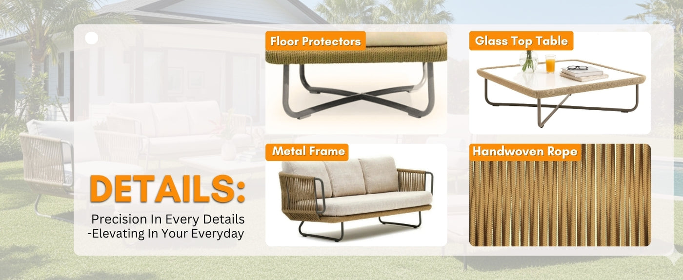 1. Rope Furniture - Clean with mild soap and water, avoid excess moisture, and cover when not in use to prevent wear from sun and rain.
