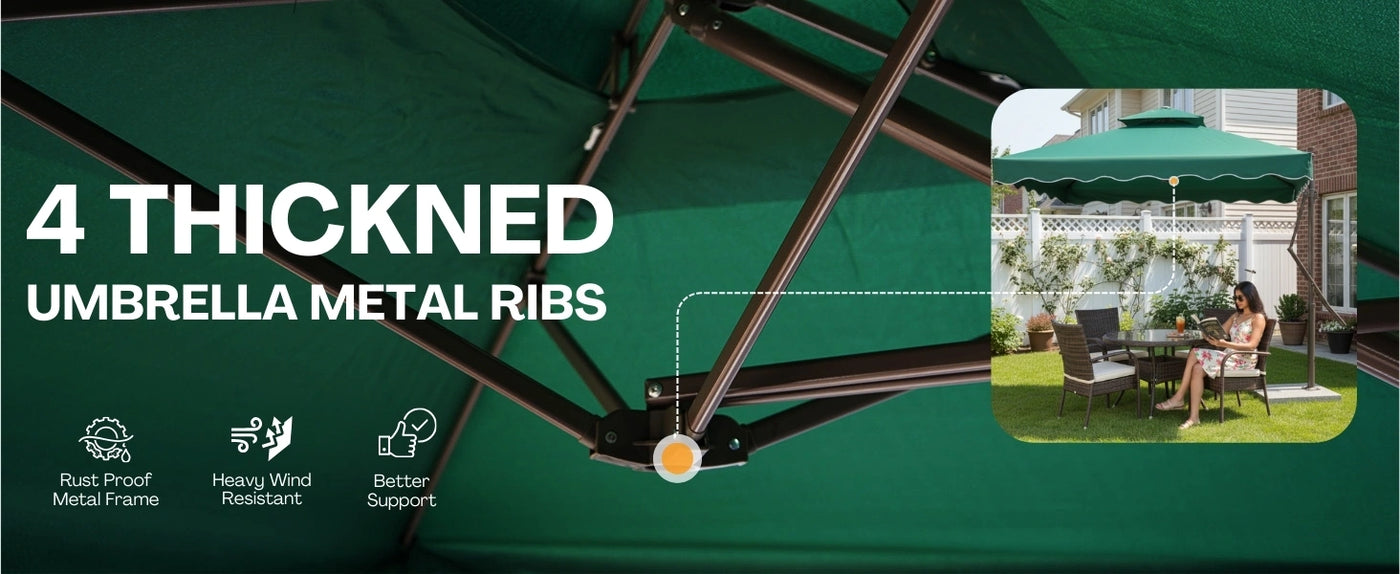 - Rust-Resistant Powder-Coated Metal Frame : Built with a durable, weatherproof metal pole and ribs coated with rust-resistant powder finish designed to withstand seasonal outdoor exposure.