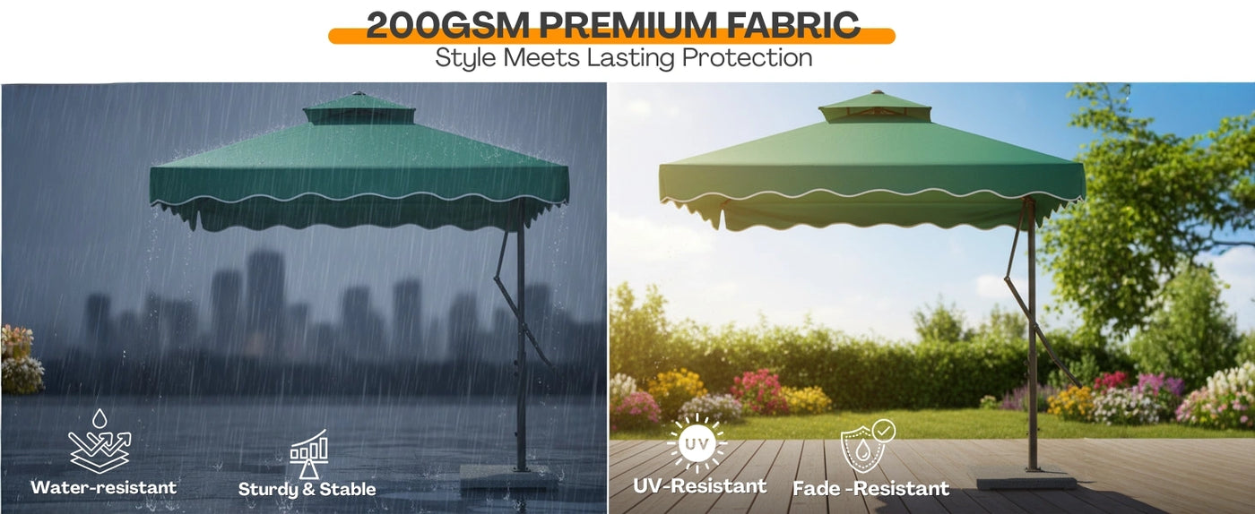 - Premium UV-Resistant & Water-Repellent Canopy : Made from high-quality polyester fabric that blocks harmful UV rays and resists fading, mold, and light rain ensuring long-lasting vibrant color and comfort.
