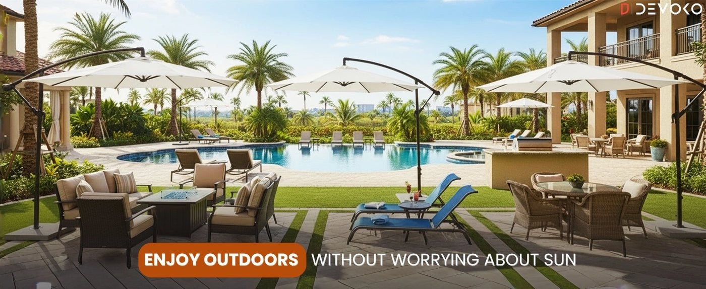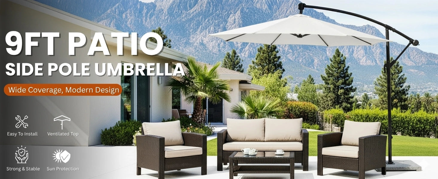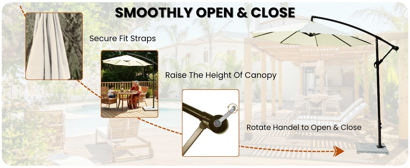 - Modern & Space-Saving Offset Design : The cantilever structure keeps the pole out of the way, making it perfect for shading patio tables, lounge chairs, or poolside seating without obstruction, enhancing outdoor layout flexibility.