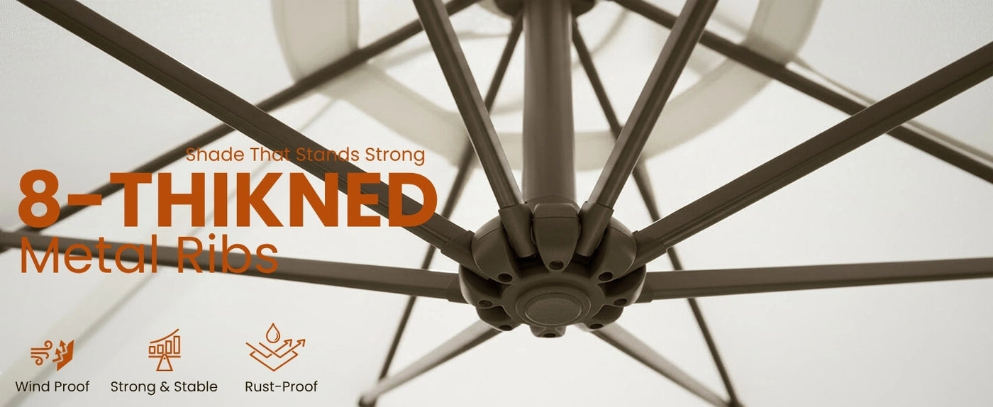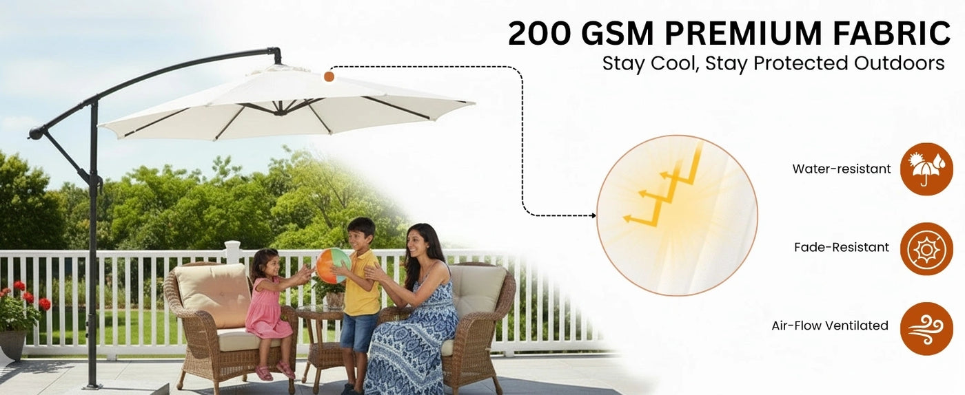 - Rust-Resistant Powder-Coated Metal Frame : The robust cantilever arm and pole are made from corrosion-resistant metal with a powder-coated finish for superior strength, rust resistance, and sleek aesthetics.