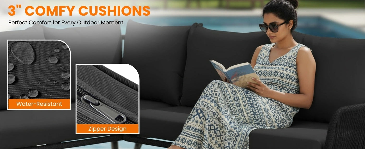 - Comfortable & Supportive Cushions : Comes with thick, high-density foam cushions covered in water-resistant, quick-dry, and washable fabric. The cushions offer plush comfort while being easy to maintain.