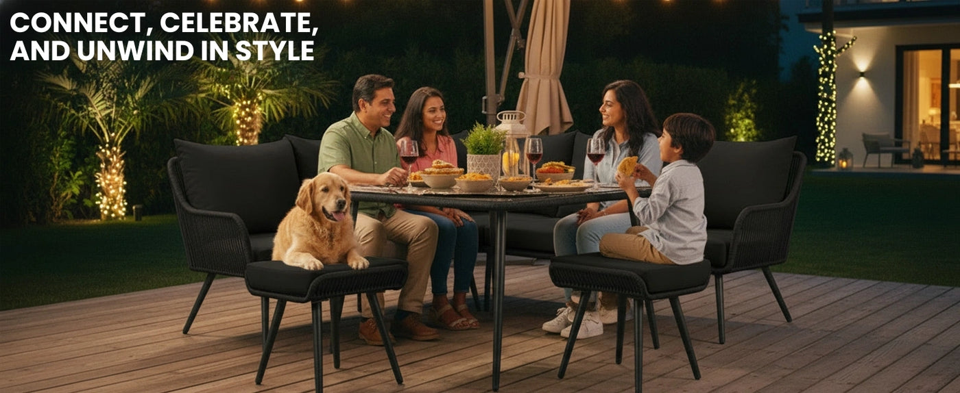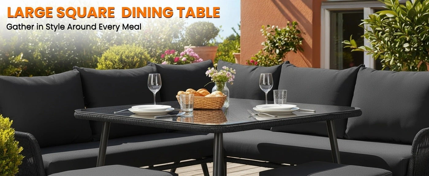 - Stylish Center Table : Includes a sleek and sturdy center table with a glass top perfect for serving drinks, snacks, or decor items outdoors.