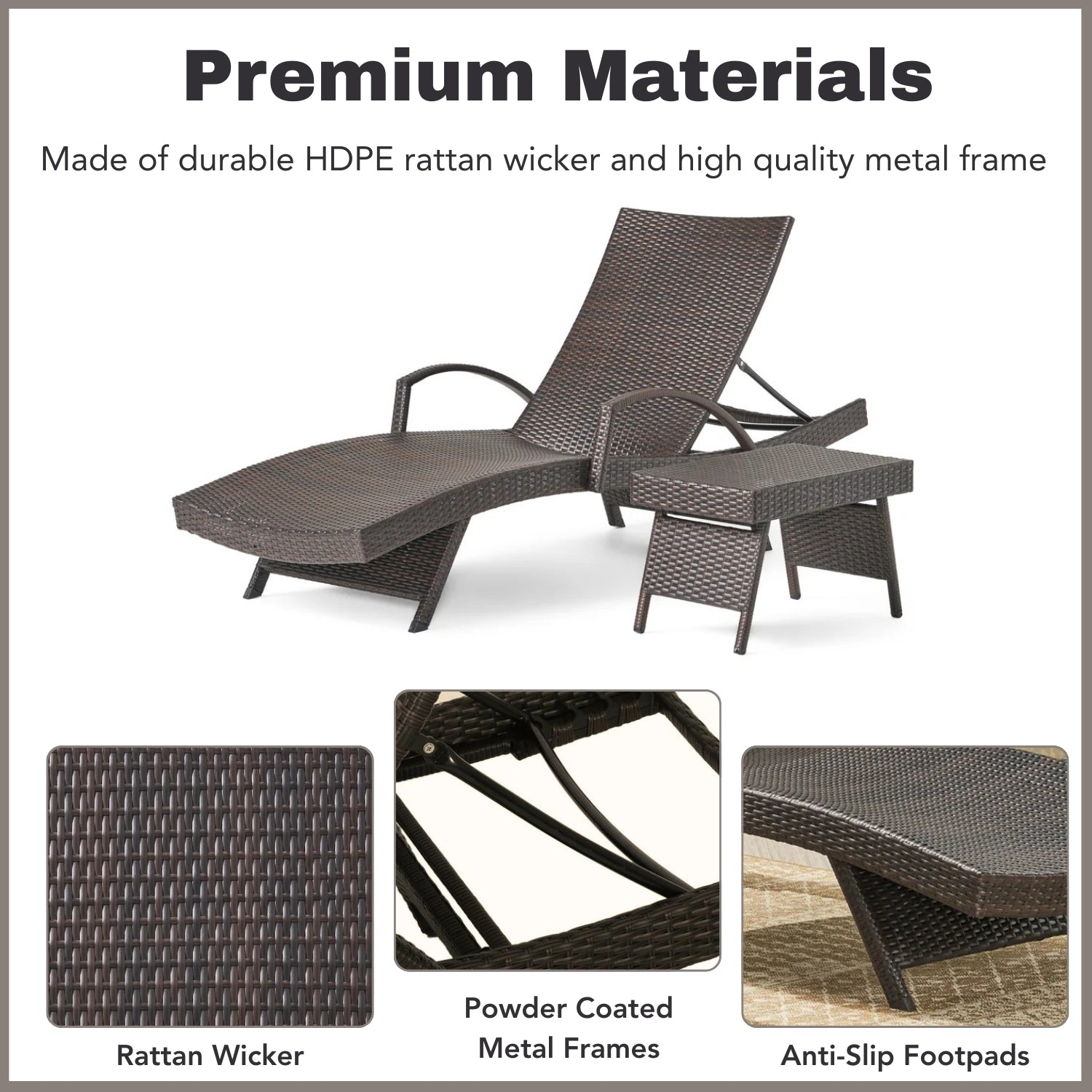 Relax in style with this Outdoor All-Weather HDPE Wicker Rattan Sun lounger Recliner, designed for ultimate comfort and lasting durability. Perfect for your garden, poolside, beach, balcony, terrace, or deck, this sleek sun lounger features a high-quality HDPE rattan weave that’s UV-resistant, waterproof, and built to withstand all seasons. The adjustable reclining backrest lets you find your ideal lounging position, while the ergonomic design offer superior comfort and support. Paired with a matching side table, it’s perfect for keeping your drinks, snacks, or book within reach. The rustproof powder-coated metal frame ensures long-lasting stability and strength, while the elegant rattan finish adds a modern, natural charm to any outdoor setting. Whether sunbathing by the pool or reading on the balcony, this weather-resistant lounge chair and side table set blends functionality, aesthetics, and outdoor resilience in one must-have patio essential.