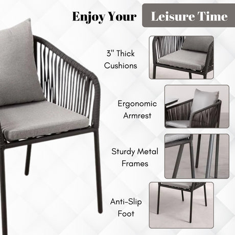 Outdoor Rope 2-Piece Patio Chairs With Wooden Base