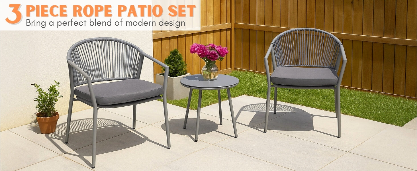 3 Piece Garden Outdoor Rope Patio Set is backordered and will ship as soon as it is back in stock.