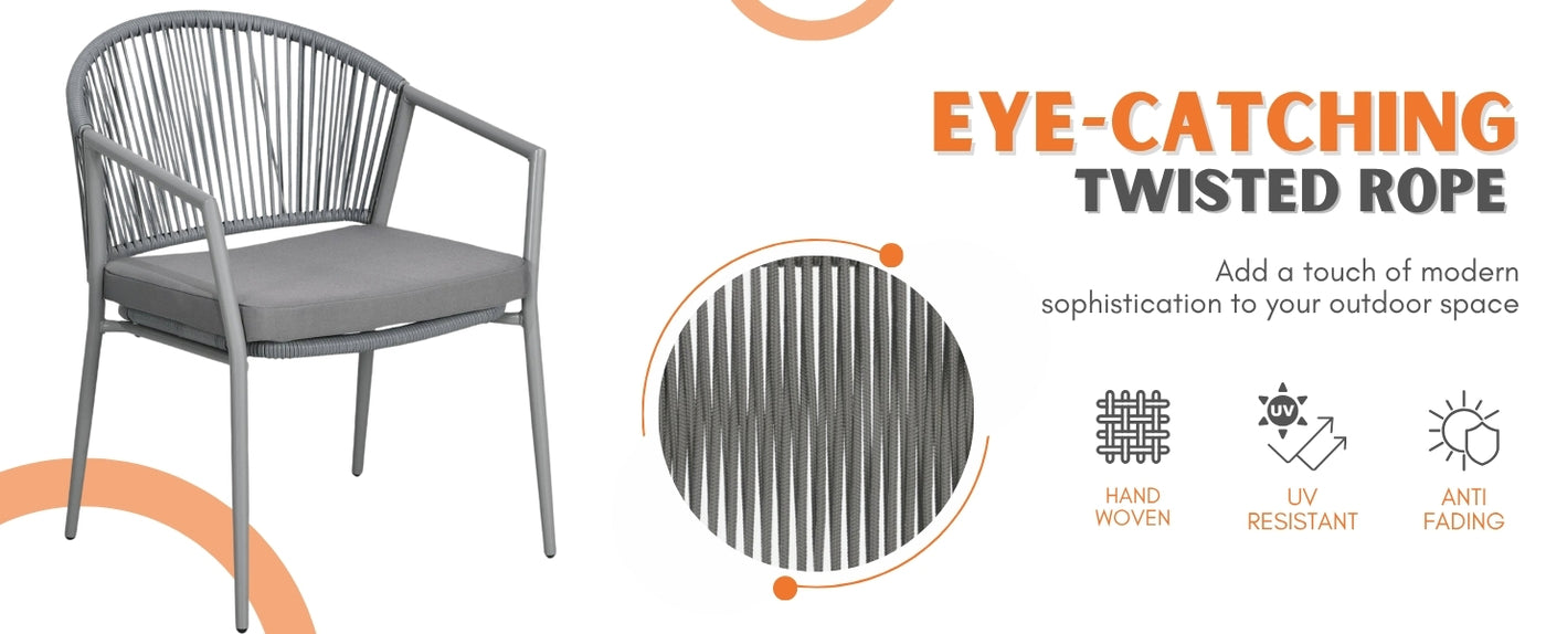 1. Rope Furniture - Clean with mild soap and water, avoid excess moisture, and cover when not in use to prevent wear from sun and rain.