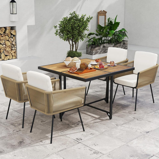 5-Piece Outdoor Patio Dining Set with Square Wood Tabletop