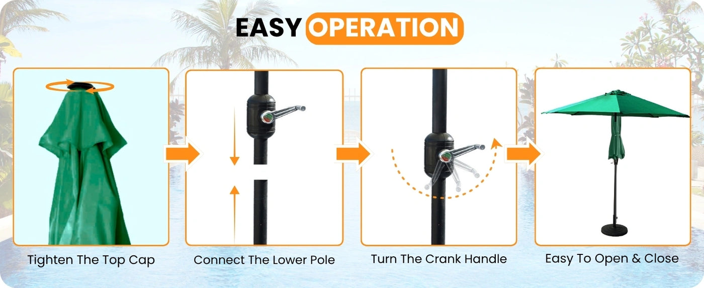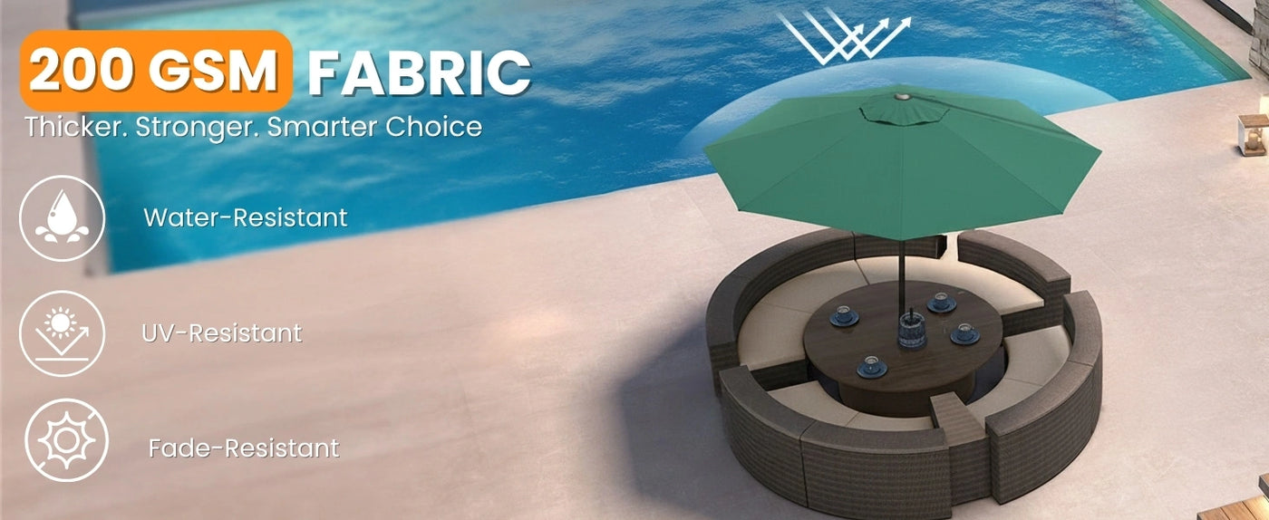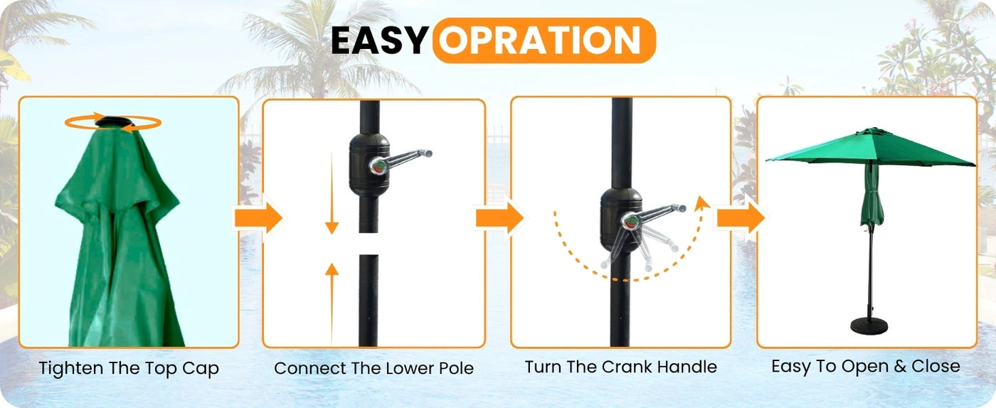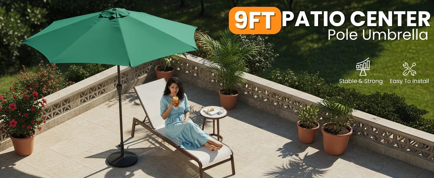 - Spacious 9ft Canopy Offers Wide Shade Coverage : Generously sized to provide ample shade for 4–6 people perfect for patios, gardens, balconies, poolside lounges, or café tables.