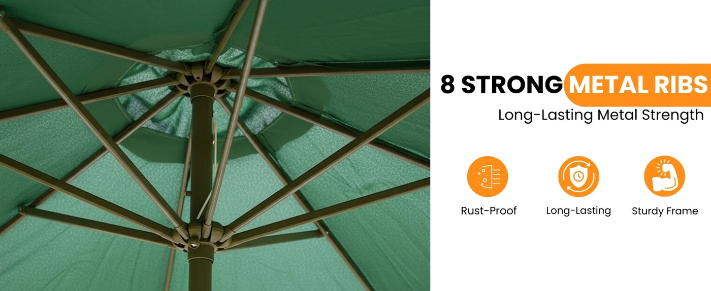 - Sturdy Center Pole Design for Enhanced Stability : Features a strong powder-coated metal center pole that supports the umbrella’s large canopy securely in place, reducing wobbling during use.
