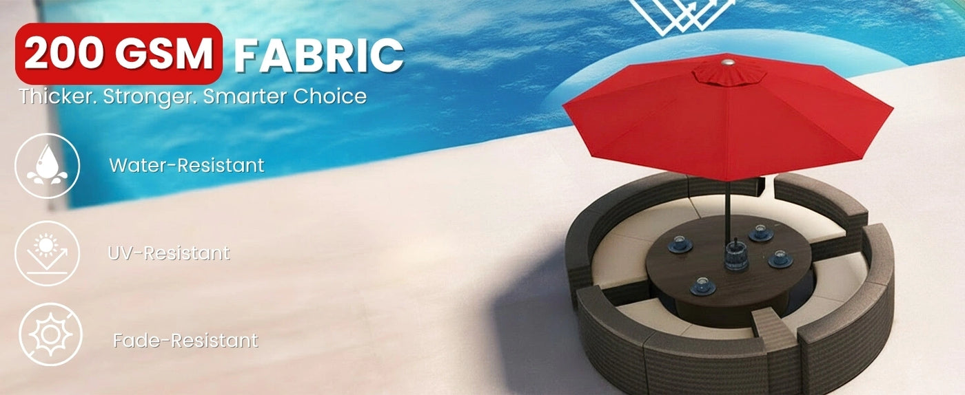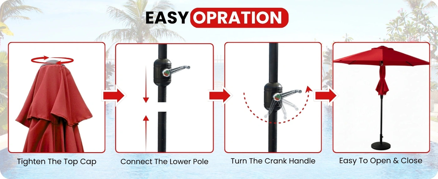 - Spacious 9ft Canopy Offers Wide Shade Coverage : Generously sized to provide ample shade for 4–6 people perfect for patios, gardens, balconies, poolside lounges, or café tables.