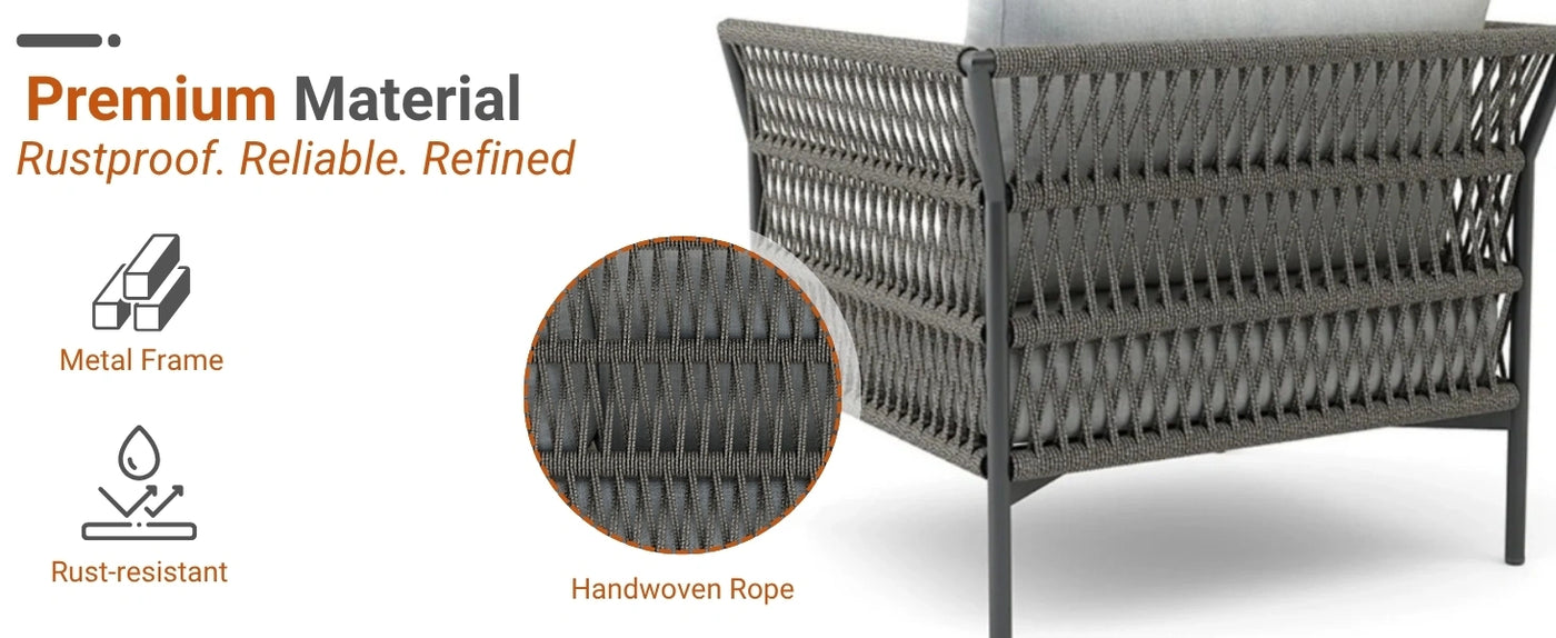 1. Rope Furniture - Clean with mild soap and water, avoid excess moisture, and cover when not in use to prevent wear from sun and rain.