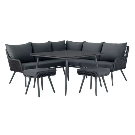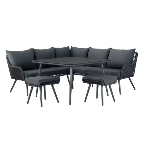 5-Seater Outdoor Rope Patio Sofa Set with Glass...
