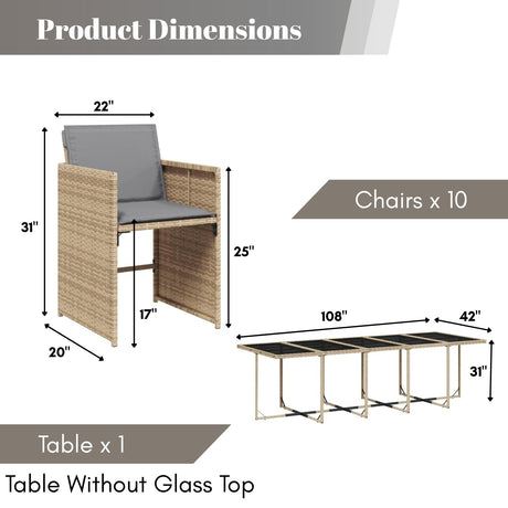 11-Piece Outdoor Rattan Wicker Dinning Set