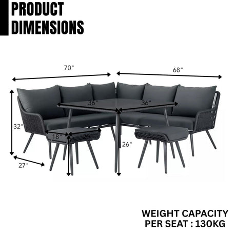 Outdoor Grey Rope 7-Seater Sofa Set With Glass ...