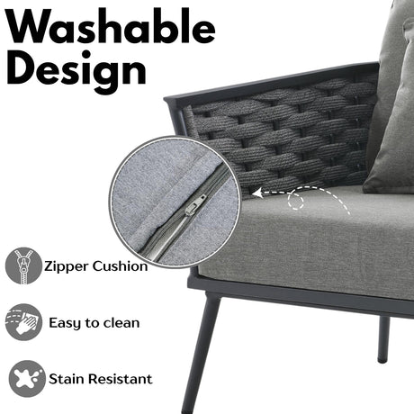 Outdoor Rope Conversation Patio Sofa Set (Black...
