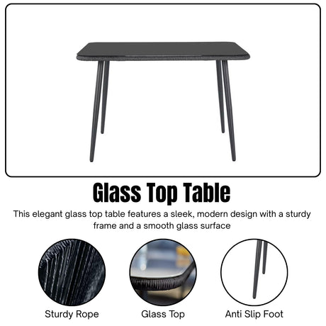 Outdoor Rope 4 Seater Sofa Set With Glass Top T...
