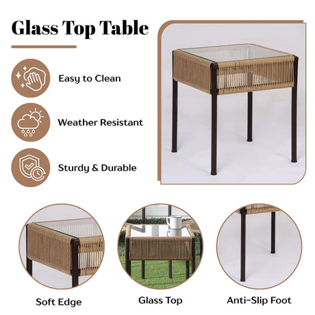 Outdoor Rope 4-Piece Patio Sofa Set with Glass ...