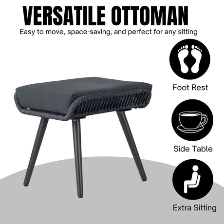 2-Piece Outdoor Rattan Wicker Ottoman Set