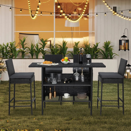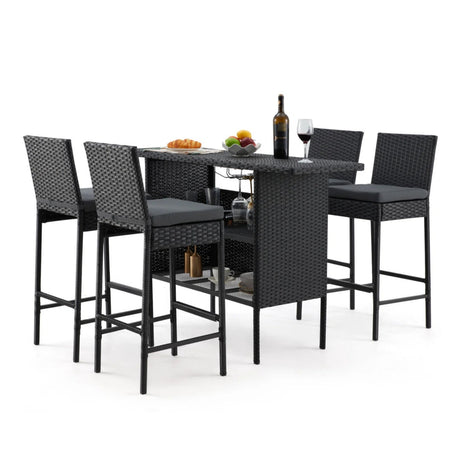 5-Piece Outdoor Rattan Wicker Bar Set with Wick...