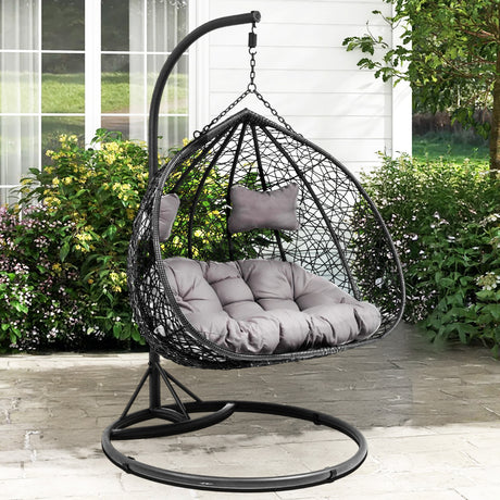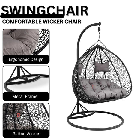 Double Seater Rattan & Wicker Swing (Black ...