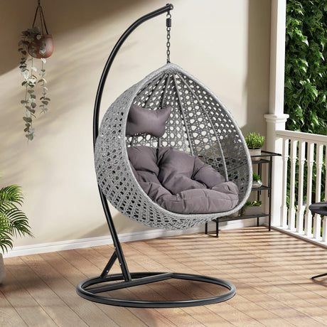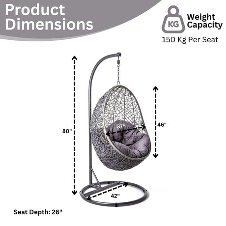 Single Seater Rattan & Wicker Swing (Grey)
