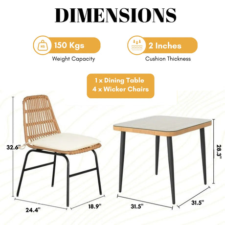 5-Piece Outdoor Patio Dining Set With Rattan Ch...