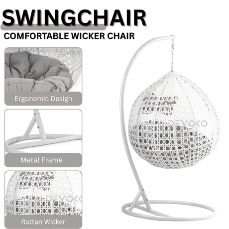 Single Seater Rattan & Wicker Swing (White ...