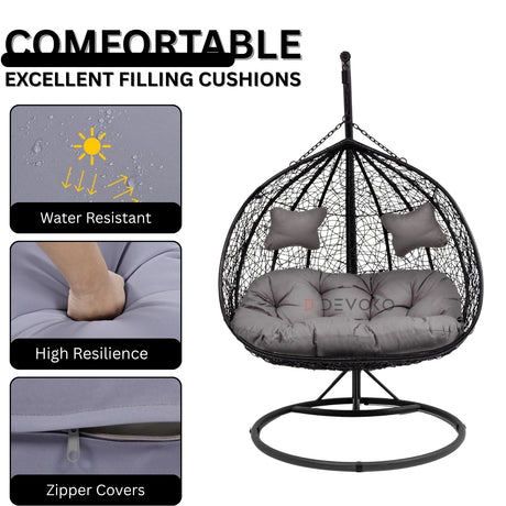 Double Seater Hanging Swing Chair (Dark Brown/G...
