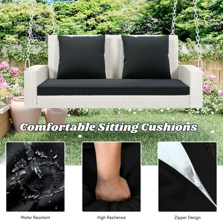 Double Seater Rattan & Wicker Swing (White ...