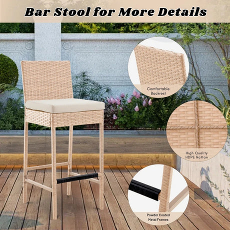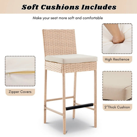 2-Piece Rattan Wicker Patio Bar Stools