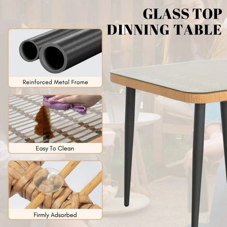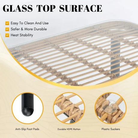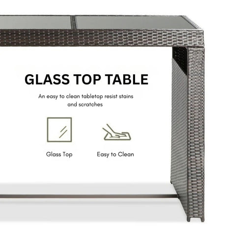 Outdoor Rattan Wicker Bar Glass Top Table