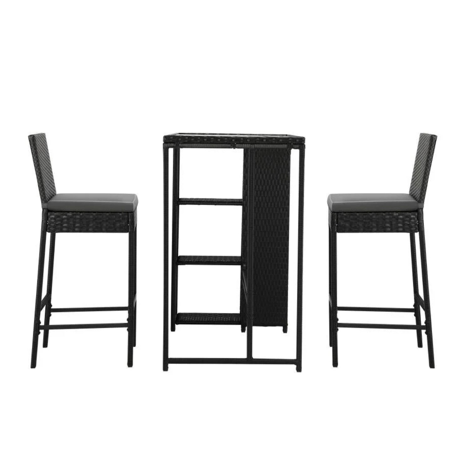 3-Piece Outdoor Rattan Wicker Bar Set with Glass Top Table is backordered and will ship as soon as it is back in stock.