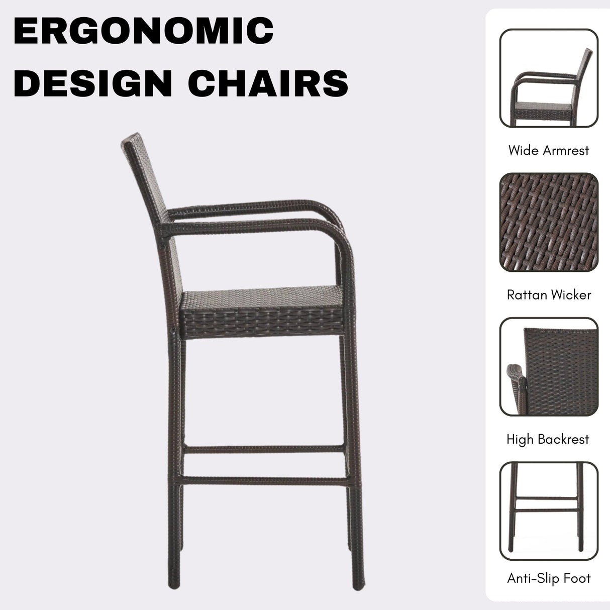 - All-Weather Rattan Wicker Construction : Crafted from handwoven HDPE rattan, this bar set is engineered for superior weather resistance, withstanding intense sun, rain, and humidity without cracking or fading.