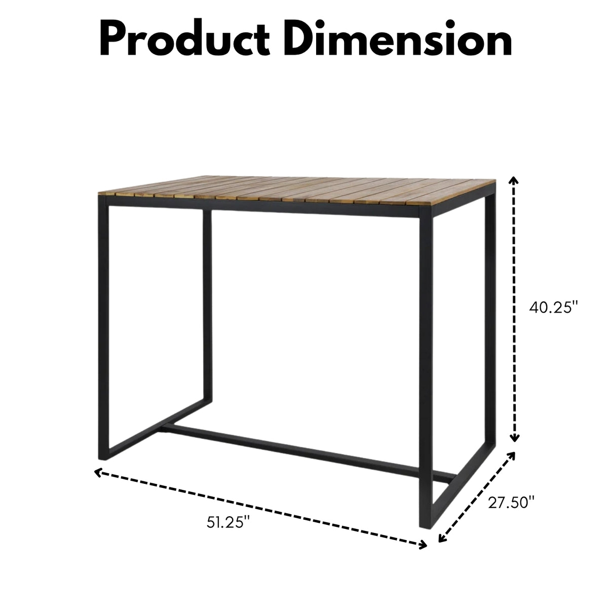 - Bar Table Size: 51.25″Lx27.50″Wx40.25″H