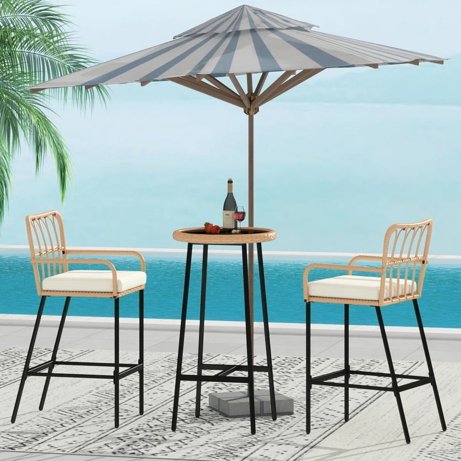 - Ergonomic Bar Chairs with Cushioned Seats : High-back bar chairs offer ergonomic support and come with water-resistant, padded cushions for enhanced comfort during extended outdoor gatherings.