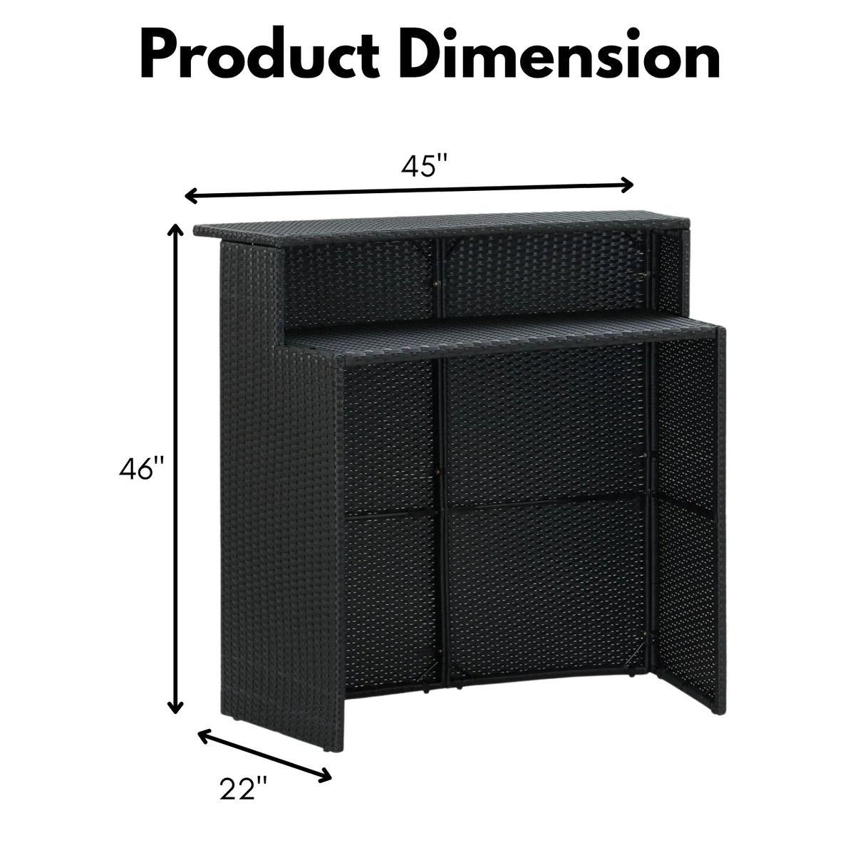 - Bar Table Size: 45″Lx22″Wx46″H