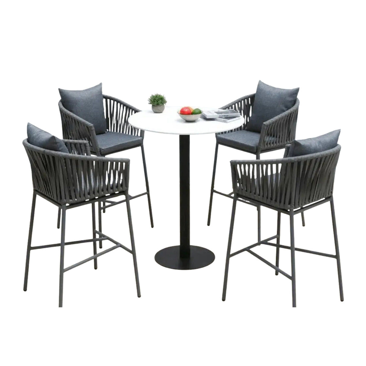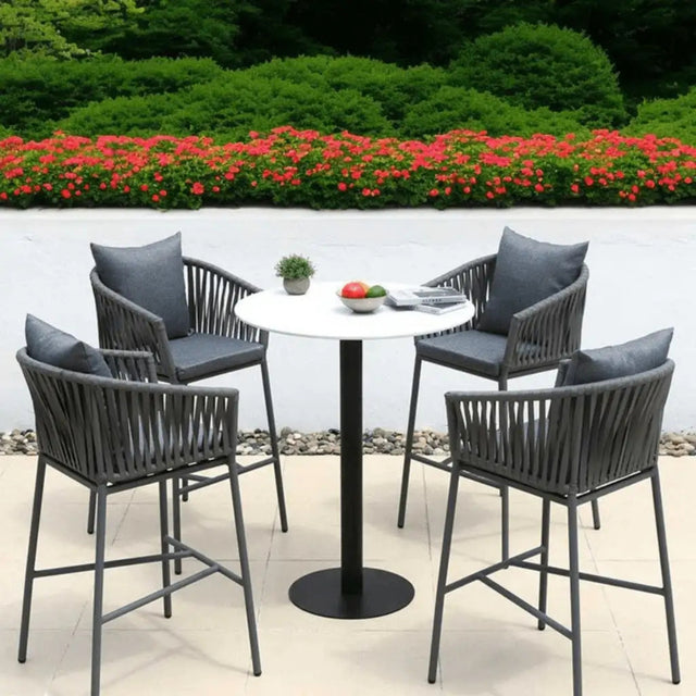 Outdoor Rope 5-Piece Bar Set With a High-Top Round Table