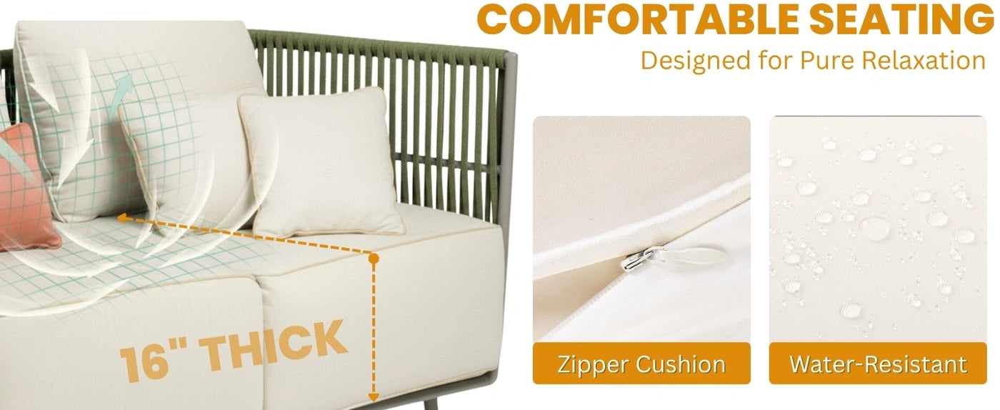 - 16-Inch Ultra-Thick Cushions : Extra-deep cushioning ensures unmatched comfort and relaxation for extended seating.