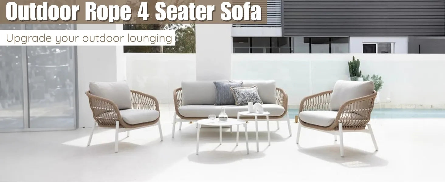 Outdoor 4 Seater Rope Conversation Sofa Set