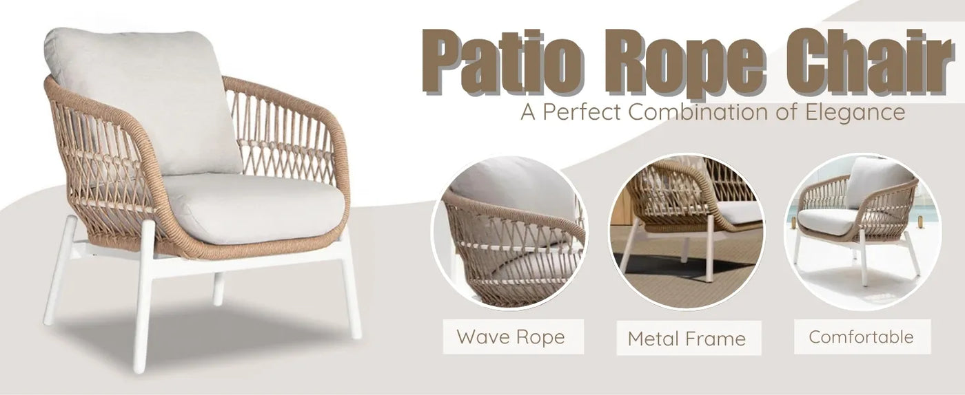 1. Rope Furniture - Clean with mild soap and water, avoid excess moisture, and cover when not in use to prevent wear from sun and rain.
