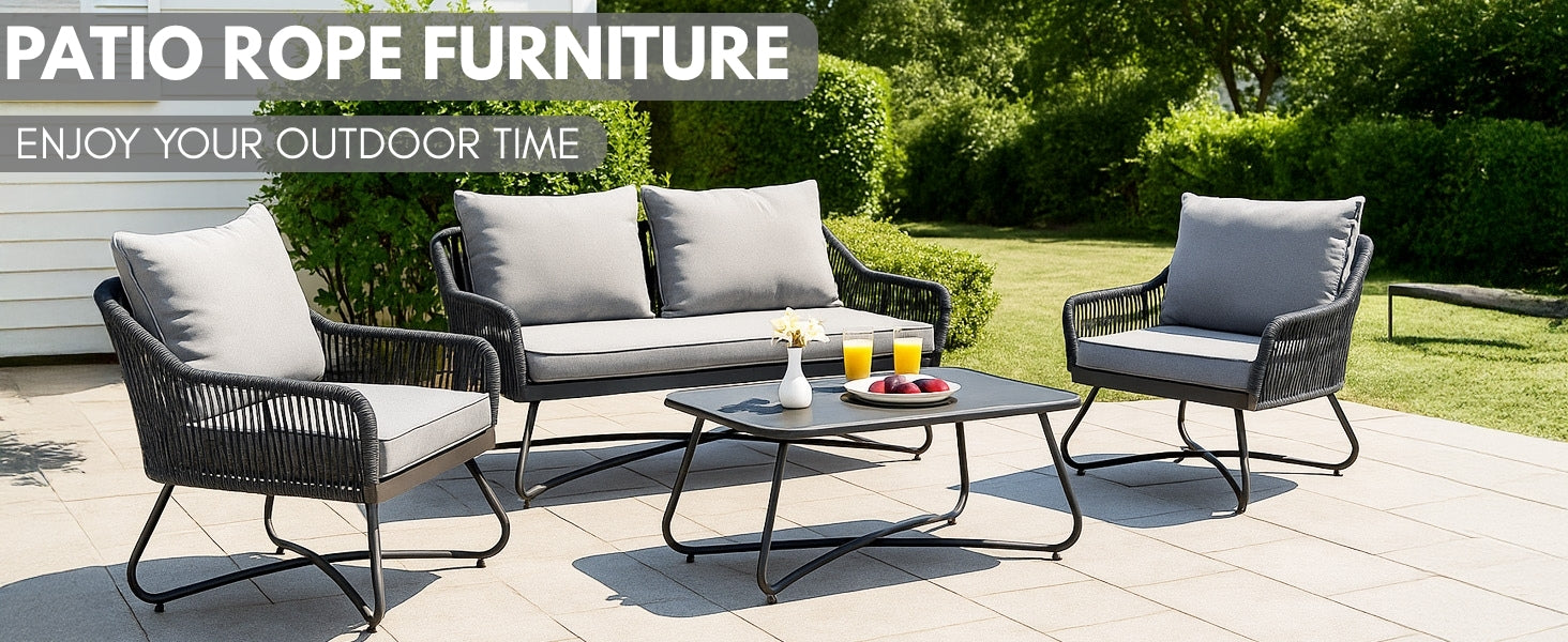 1. Rope Furniture - Clean with mild soap and water, avoid excess moisture, and cover when not in use to prevent wear from sun and rain.