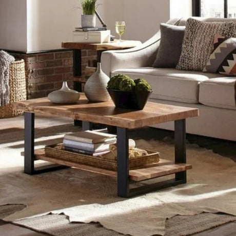 Sheesham Wood Top 2-Tier Round Coffee Table